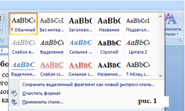 В макросах «стили» тексту задается: тип шрифта, размер шрифта, положение текста на странице, полужирный, курсив, подчеркнутый, размер межстрочного интервала, цвет. Количество их может сильно меняться, но есть основные как заголовки, «сильная ссылка» и прочие таких как: «цитата», «обычный», «без интервала», «подзаголовок» и т. п. (рис. 1)