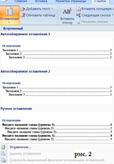 В макросе «оглавление» (автособираемое оглавление) собирает оглавление копируя текст ориентируясь на стили заголовков и устанавливает их положение в документе (на какой странице). Всего их 2. (рис.2)