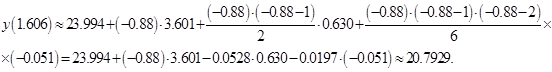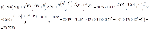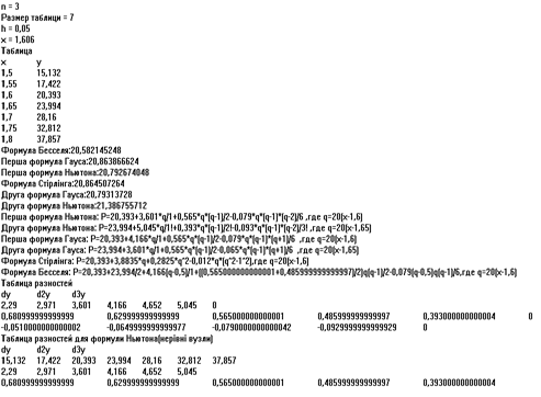 Висновок. Як зазначалося вище (див. пункт 1.6), ІФС краще використовувати, для інтерполювання в середині таблиці, в чому ми і переконалися в даному прикладі, оскільки знаходиться всередині таблиці.