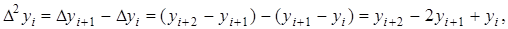 де Отримані кінцеві різниці будемо називати кінцевими різницями першого порядку. З різниць першого порядку отримаємо різниці другого порядку: