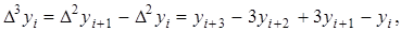 Повторюючи процедуру, отримаємо кінцеві різниці третього порядку: