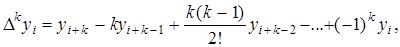 Кінцевими різницями називають різниці між значеннями функції в сусідніх вузлах (точках ) інтерполяції: