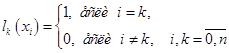 Поліном приймає значення в точці і рівний нулю у всіх останніх вузлах при . Звідси випливає, що інтерполяційний поліном: