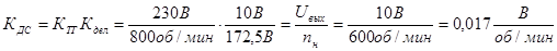 Коэффициент обратной связи по скорости рассчитывают по выражению:
