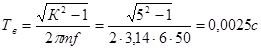 Постоянную времени фильтра, установленного на входе датчика тока возбуждения рассчитывают для заданных К=5 и m=6: