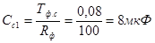 Параметры схемы фильтра, устанавливаемого на входе РС, рассчитывают по значению его постоянной времени:
