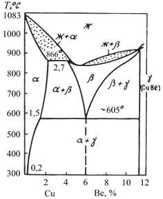 Дальнейшее упрочнение осуществляется введением Ti, образующего высокопрочные интерметаллиды TiBe12