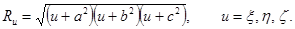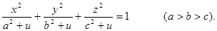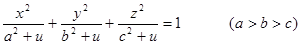 Эти три корня и являются эллипсоидальными координатами точки x, y, z. Их геометрический смысл явствует из того, что поверхности постоянных значений представляют собой соответственно эллипсоиды, однополостные гиперболоиды и двухполюсные гиперболоиды, причем все они софокусны с эллипсоидом
