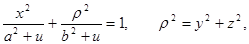 При a>b=с эллипсоидальные координаты вырождаются в так называемые вытянутые сфероидальные координаты. Две координаты и задаются корнями уравнения
