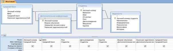 Рисунок 10 – Структура запроса «Итоговый» в режиме «Конструктор»