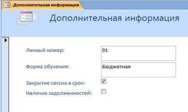 Форма: «Дополнительная информация» создается при помощи мастера форм на базе необходимой информации.