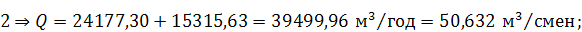 | Количество перерабатываемого сырья, м3/смен. |