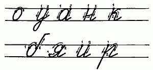 Категорически противопоказано требовать от леворукого ребенка безотрывного письма. Нужно с самого начала создать условия, чтобы ребенок не чувствовал неловкости, неуверенности. При овладении письмом леворукий ребенок должен выбрать для себя тот вариант начертания букв, который ему удобен).