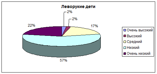 3. Проведенный сравнительный анализ нейро- и социально-психологических особенностей младших школьников, имеющих различные типы распределения функций, показал, что дети-левши обладают определенной спецификой познавательной деятельности, а именно: сниженной способностью зрительно-двигательной координации, недостатком пространственного восприятия и зрительной памяти, трудностями при анализе пространственных соотношений, особой стратегией переработки информации – синтетическим стилем познания, слабостью внимания, трудностями переключения и концентрации внимания, а так же речевыми нарушениями и ошибками звукобуквенного анализа.
