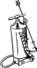 Опрыскиватель состоит из резервуара, воздушно-поршневого насоса, вставляемого в резервуар, и ручного брандспойта. Для подготовки опрыскивателя к дезактивации необходимо: закрыть запорный кран на брандспойте; вынуть насос из резервуара, отвернуть на 3-4 оборота контрольную пробку; заполнить резервуар через сетчатый фильтр раствором; вставить насос и завернуть контрольную пробку; создать в резервуаре давление до 5 кг/см2