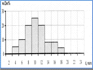 Рис. Дисперсный состав эмульсий стирола, полученный в присутствии МАФ-3 степени конверсии: р = 12%