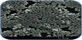 Представлена ниже электронномикрофотогрвфия с узким гауссовским распределением глобул по размерам с гистограммой и подобранной функцией, использую математический пакет TableCurve 2D.