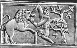 Рис.3 "Геракл (?), борющийся со львом". Рельеф из Печерского монастыря в Киеве. Шифер.11 в. Киево-Печерский историко-художественный музей-заповедник.