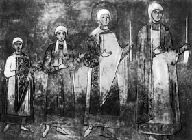 Рис.18 "Дочери Ярослава Мудрого". Фреска в центральном нефе Софийского собора в Киеве. Середина 11 в.