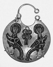 Рис.21 Золотой колт с перегородчатой эмалью.11-12 вв. Исторический музей УССР. Киев.