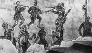 Рис.22 "Музыканты и скоморохи". Фреска в южной башне Софийского собора в Киеве. Середина 11 в.