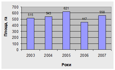 Посівна площа даної культури в 2006 році становила 3964 тис. га. Найбільша ж посівна площа під даною культурою була зареєстрована в 2003році, а саме 4001 тис. га. Стосовно збиральної площі то вона в 2006 році склала 3611 тис. га. Що на 222 тис. га більше ніж в 2005 році. Врожайність по Харківській області в 2006 році була нижче ніж по Україні і становила 8,6 ц/га. Розглянувши дані таблиці можна зробити висновок що вирощування соняшнику як по Україні так і по Харківській області ведеться екстенсивним шляхом, так як виробництво даної культури збільшується завдяки значному збільшенню площ, а не підвищенню урожайності.