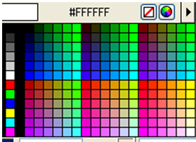 Селектор цвета состоит из двух частей. Справа находится поле ввода, где вводится код нужного цвета в формате RGB. Выглядит это так — #RRGGBB, где RR — это шестнадцатеричное число от 0 до FF, задающее долю в окончательном цвете красной составляющей, GG — зеленой, а BB — синей. Пример задания цвета в формате RGB — #336699 (это тускло-голубой цвет).Но вряд кто запомнит наизусть шестнадцатеричные коды цветов. Поэтому в левой части селектора цвета находится кнопка вызова окна выбора цвета,