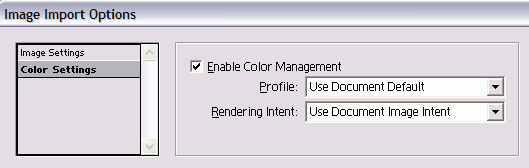 Выберите категорию Color Settings (Настройки цвета). Если изображение имеет цветовую конфигурацию, можете включить управление цветом.