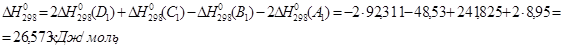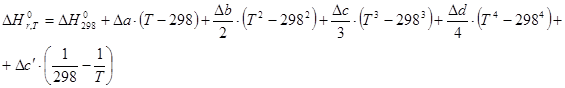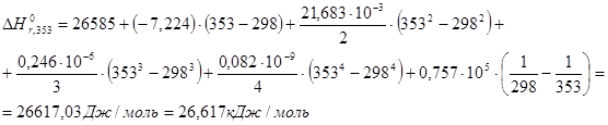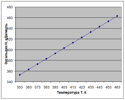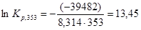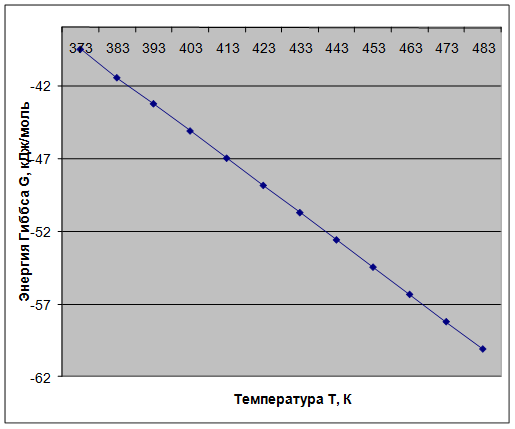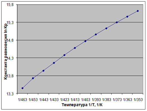 2. Термодинамический расчет показал, что реакция является эндотермической (ΔH > 0), протекает с небольшим поглощением тепла. Процесс характеризуется маленькими значениями Кр. С увеличением температуры константа равновесия увеличивается, а, следовательно, увеличивается выход продукта. В указанных условиях реакция протекает самопроизвольно, т.к. значения энергии Гиббса отрицательны ( G < 0). Процесс идет с поглощением тепла и с увеличением температуры, значит, в соответствии с принципом Ле-Шателье равновесие смещается в сторону образования продуктов реакции. Изменение концентрации реагирующих веществ приведет к смещению равновесия в сторону образования продуктов реакции (по принципу Ле-Шателье).