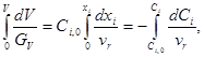 Учитывая, что dGi = d[Gi,0(1-xi)] = -Gi,0dxi, находим выражение по одному из компонентов для элементарного объема реактора dV: