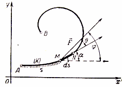 . Тогда . Просуммируем, работа выразится криволинейным интегралом первого типа: . Пусть - угол между направлением элемента и осью x