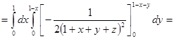 1). Вычислить интеграл , распространённый на тетраэдр , ограничиваемый плоскостями , , и (чертёж ). Решение: Запишем границы изменения каждой из переменных