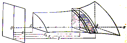 (чертёж 1). Эта фигура ограничена сверху кривой , имеющей уравнение , где - положительная и непрерывная в промежутке функция; снизу она ограничена отрезком оси , а с боков – двумя ординатами и (каждая из которых может свестись к точке).
