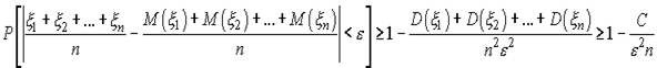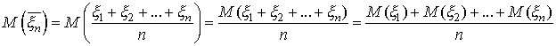 Обозначим через величину , т.е. среднюю арифметическую n случайных величин. Случайная величина имеет математическое ожидание