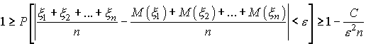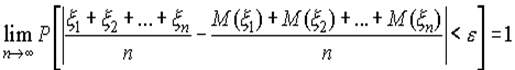 Смысл закона больших чисел Чебышева состоит в следующем. В то время как отдельная случайная величина может принимать значения, очень далекие от своего математического ожидания, средняя арифметическая большого числа случайных величин с вероятностью, близкой к единице, принимает значение, мало отличающееся от среднего арифметического их математических ожиданий.