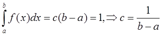 Определение. Случайная величина ξ называется равномерно распределено в интервале (a, b), если её плотность распределения постоянная, т.е. f(x) = с.