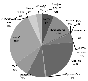 Основними лідерами ринку за кількістю укладених договорів на страхування озимих культур на період перезимівлі були наступні компанії (у відсотковому відношенні від загальної кількості):