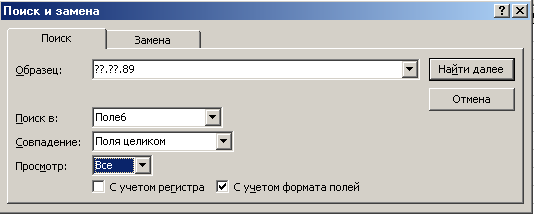 12. Виконайте пошук елемента в таблиці. Для цього зробити активним те поле, у якому здійснюється пошук, а потім вибрати пункт меню Правка / Знайти.