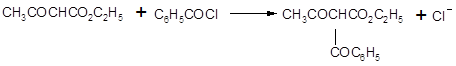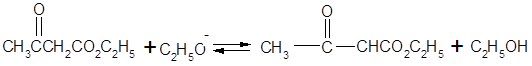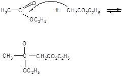 Механизм конденсации Кляйзена: первая стадия представляет собой образование аниона этилацетата, который, будучи чрезвычайно сильным нуклеофилом, атакует карбонильный атом углерода второй молекулы сложного эфира. Элиминирование этилат-иона приводит далее к эфиру β – кислоты, этилацетоацетату.