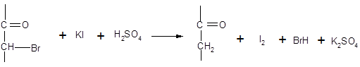 Химический метод определения состава кето-енольной смеси был разработан Мейером. Он основан на том, что енольная форма практически моментально реагирует с бромом. Определение производят следующим образом. К спиртовому раствору ацетоуксусного эфира при – 70 С прибавляют избыток брома; поскольку нарушенное при бромировании равновесие постепенно вновь восстанавливается за счет перехода кето-формы в енол, избыток брома уничтожают путем добавления α-нафтола. Так как образовавшееся бромкетосоединение, содержание которого соответствует содержанию енола в аллелотропной смеси, количественно реагирует с HI с выделением свободного йода, к исследуемому раствору добавляют KI и серную кислоту; выделившийся йод оттитровывают. Весь процесс можно представить следующей схемой: