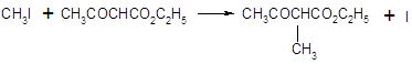 Анионы сложных эфиров типа ацетоуксусного могут быть проалкилированы алкилгалогенидами. Сложный эфир превращается при действии сильного основания в енолят-анион, и последний далее алкилируется по SN2 реакции алкилгалогенидом. Обычно преобладает С – алкилирование.
