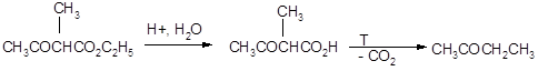 Ацетоуксусный эфир может быть гидролизован в кислых условиях до соответствующих кислот, которые при нагревании легко декарбоксилируются. Из алкилацетоуксусных эфиров при этом образуются метилалкилкетоны: