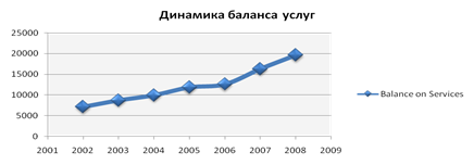 Итак, общая тенденция товарооборота положительная. Тенденция торгового баланса в основном отрицательная, хотя 2002, 2006, 2007 гг. торговый баланс был положительным. Наибольший рост торгового баланса (то есть наибольшее превышение экспорта над импортом) наблюдается в 2007 г., в том году - торговый баланс вырос на 38,7% по отношению к 2002 г. и в 3 раза по отношению к 2006 г. Динамика товарооборота более плавная, наибольший рост наблюдался в 2004 г. - 24,1%.