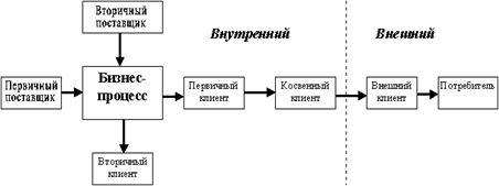 По-иному обстоит дело при процессом подходе. Он ориентирован, в первую очередь, не на организационную структуру предприятия, а на бизнес- процессы, конечными целями выполнения которых, является создание продуктов или услуг, представляющих ценность для внешних или внутренних потребителей.