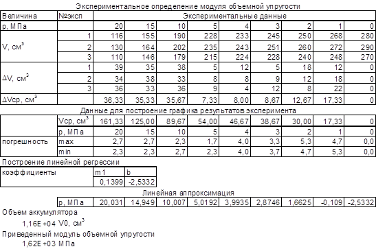 Занятие 2 - Обработка эксперимента по определению приведенного модуля объемной упругости жидкости