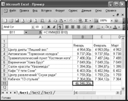 Формула является основным средством для анализа данных. С помощью формул можно складывать, умножать и сравнивать данные, а также объединять значения. Формулы подчиняются определенному синтаксису, в который входит знак равенства (=), вычисляемые элементы (операнды) и операторы. Операндами могут быть: константы, ссылки или диапазоны ссылок, заголовки, имена или функции. Координаты ячеек можно вводить, указывая курсором на нужную ячейку.