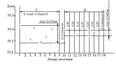 Рис. 2. Підвищення точності розміру заготовки, оброблюваної на токарному верстаті, шляхом зміни подачі