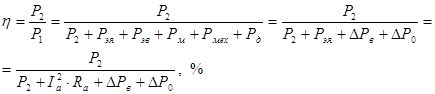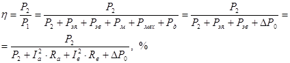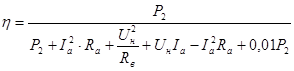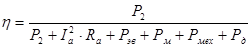КПД двигателя постоянного тока определяется соотношением полезной мощности на валу к мощности , потребляемой из сети: