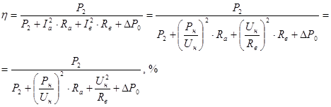 от номинальной мощности, потери в цепи параллельного возбуждения D