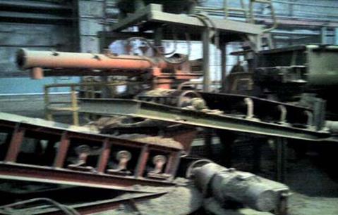 1-й пролет – участок формовки крупного литья (массой до 200 т). Формовка производится в кессонах путем сборки стержней, изготовленных из ПСС.
